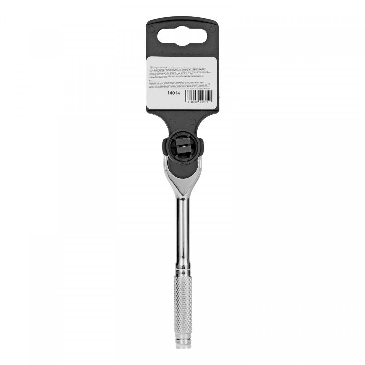 Цельнометаллический хромированный ключ-трещотка Сибртех 14014 из стали CrV, с посадочным размером 1/4″ и 45-зубым храповым механизмом, с функцией быстрого сброса, используется для монтажа и демонтажа резьбовых соединений. Предназначен для установки торцевых головок, адаптеров и удлинителей. Цельнометаллическая конструкция отличается повышенной прочностью, что позволяет работать со значительным усилием. Инструмент пригодится дома, в гараже и в поездке.