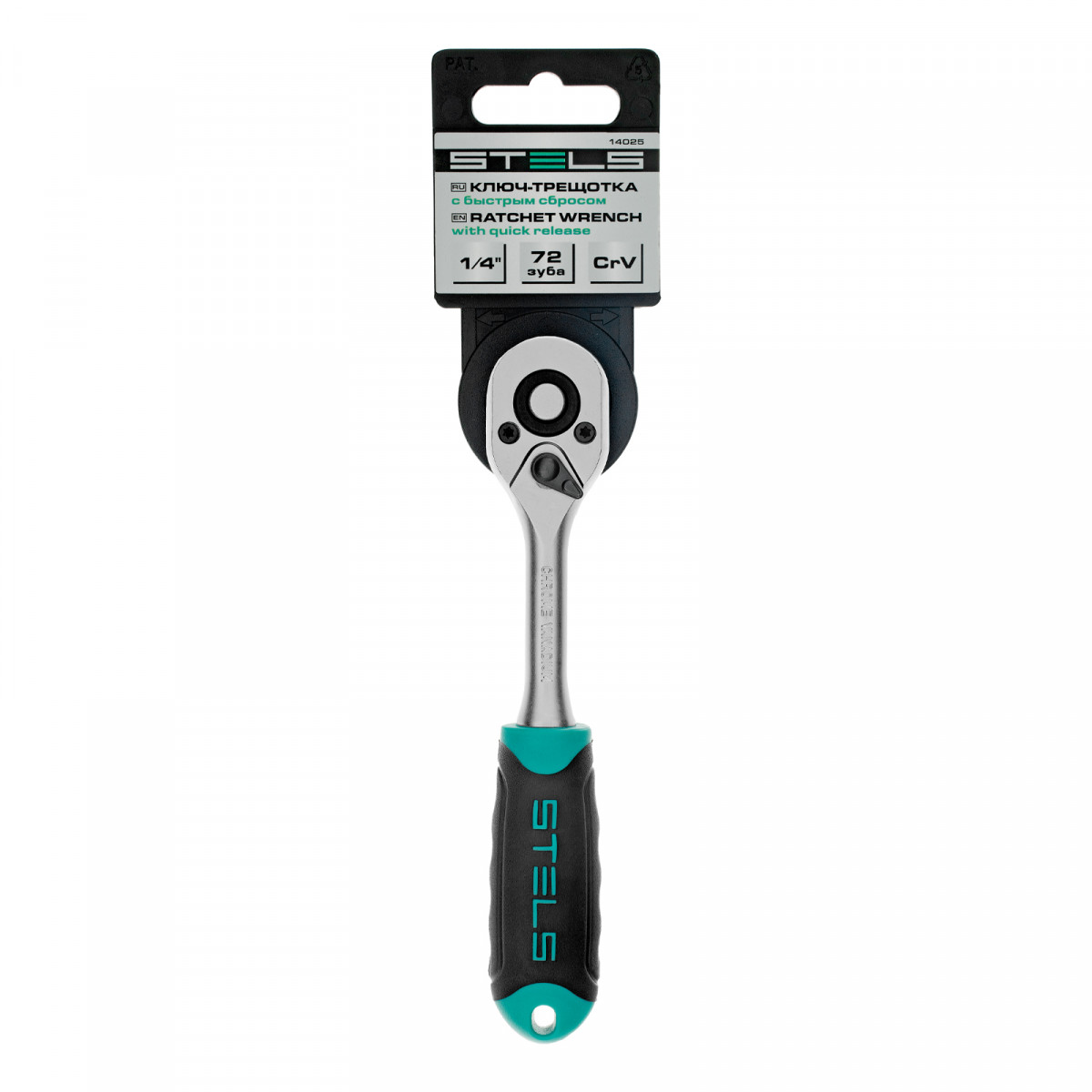 Ключ-трещотка 1/4", CrV, 72 зуба, с быстрым сбросом, матовый хром Stels