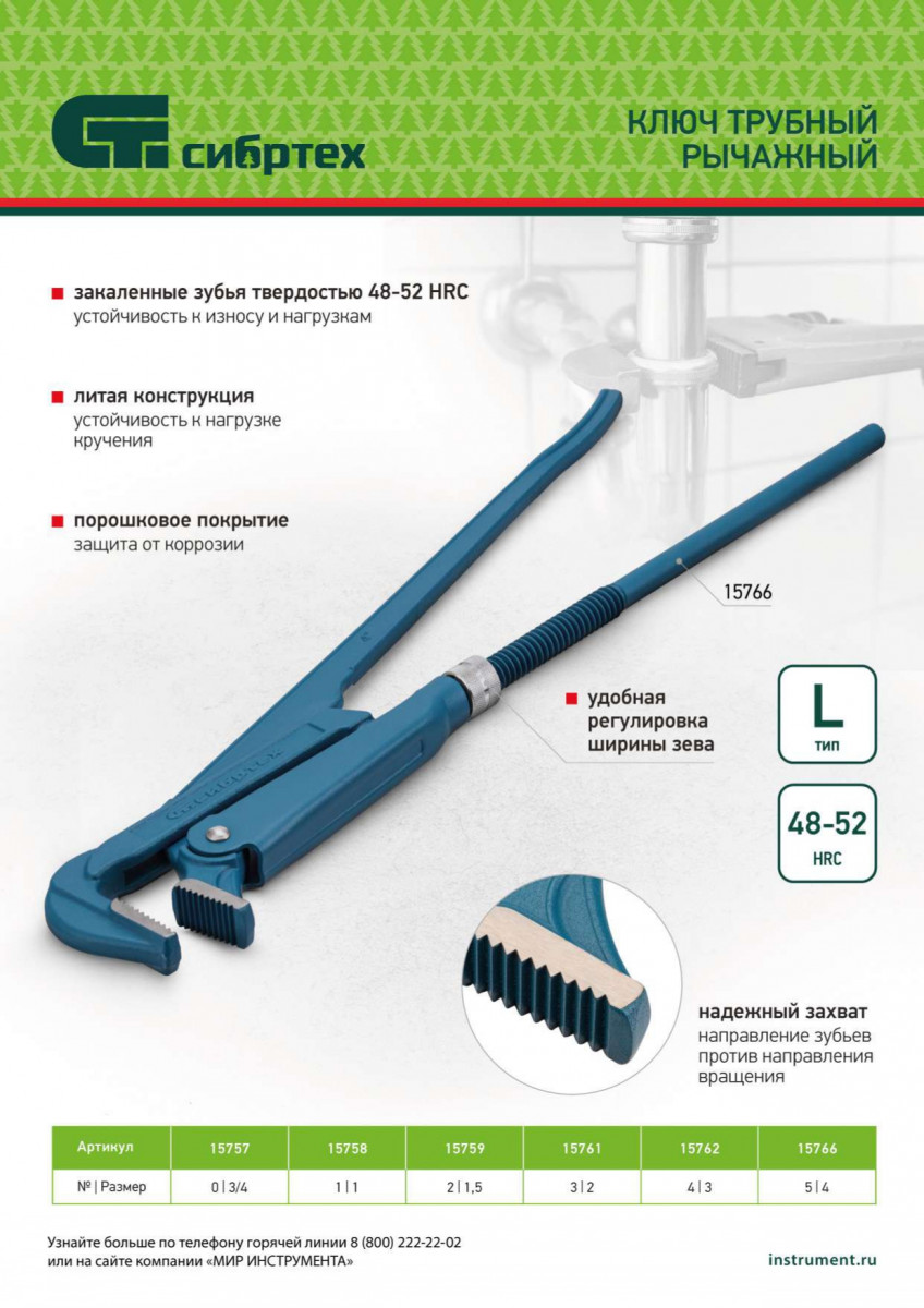 Литой трубный рычажный ключ Сибртех №1 15758, тип «L», используется для захвата и вращения труб диаметром 1", а также других деталей со специальным профилем и без него. Рычажный механизм увеличивает рабочее усилие, снижая нагрузку на руки мастера. Инструмент рассчитан на бытовое и профессиональное применение.