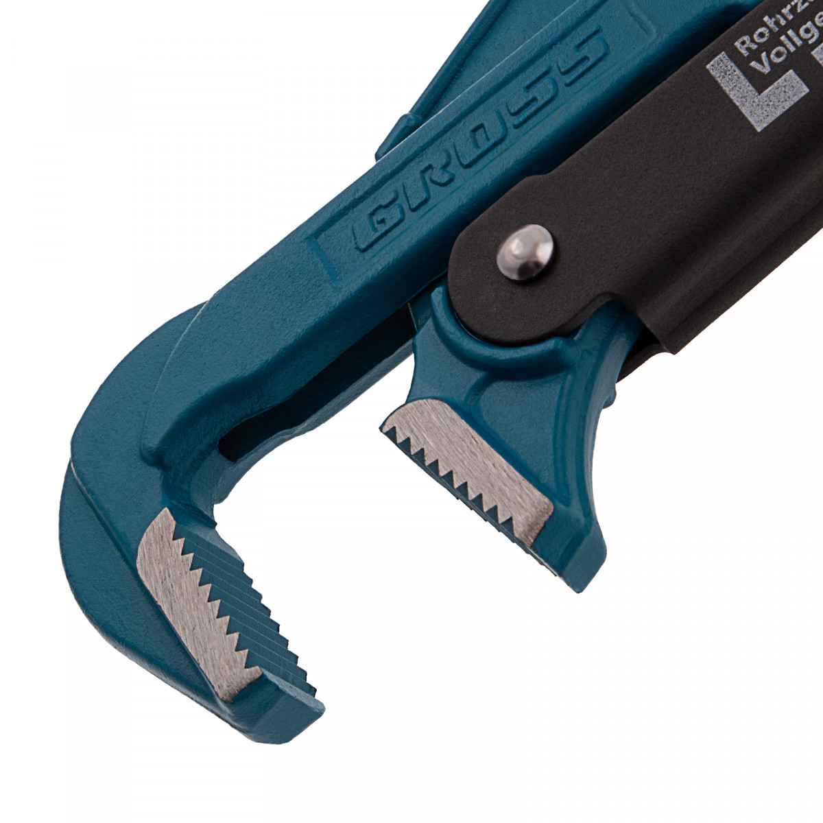 - Самоблокируемый захват труб и деталей — зубья прогрессивной формы наклонены против направления вращения.
