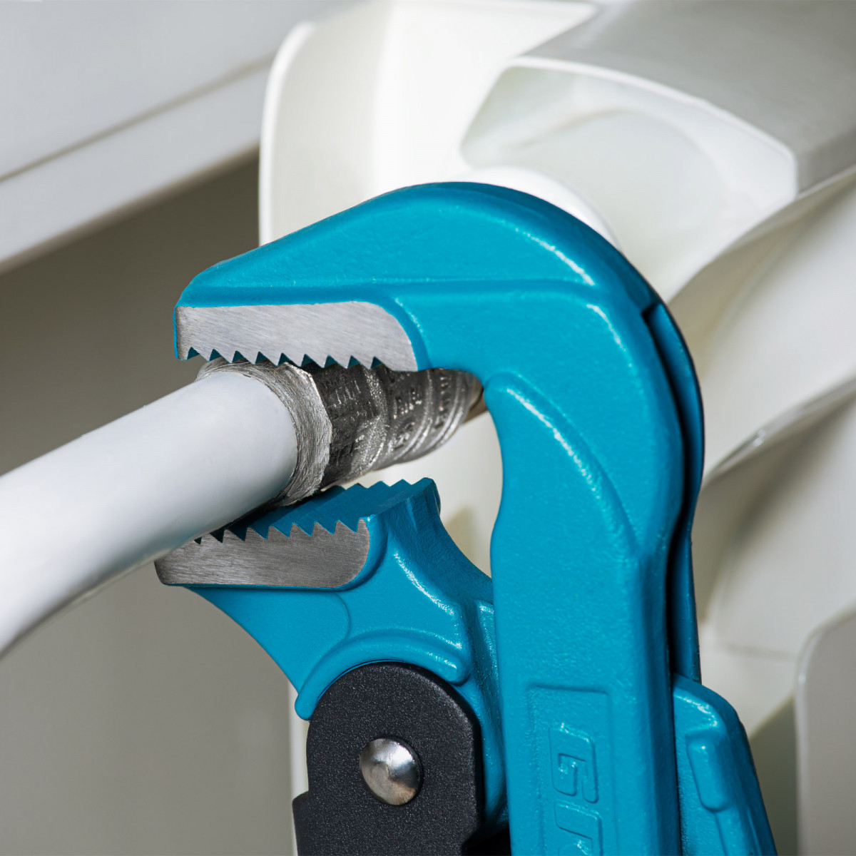 Самоблокируемый захват труб и деталей благодаря зубьям прогрессивной формы.