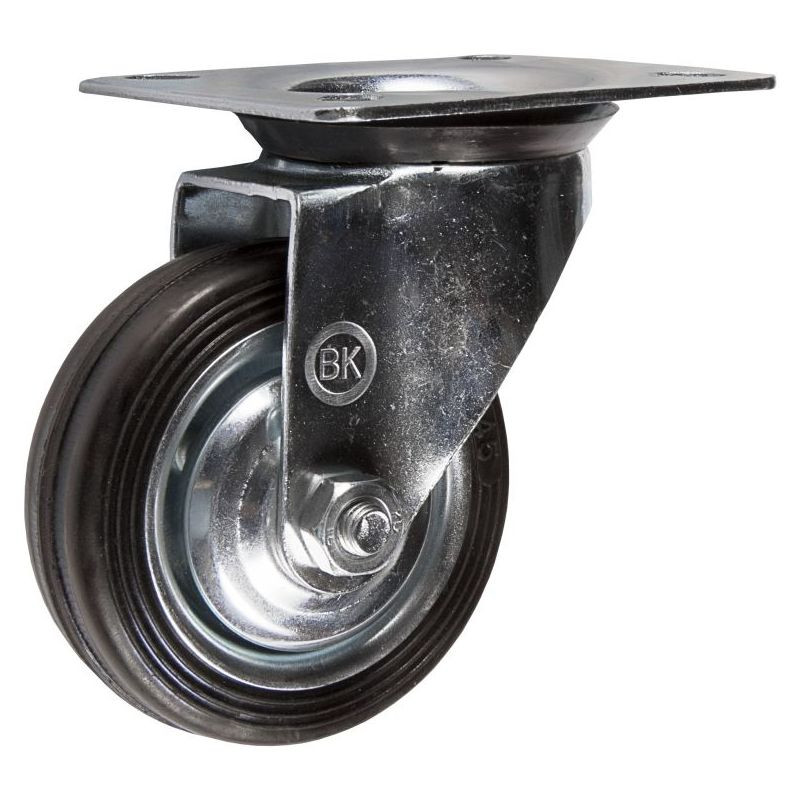 Колесная опора 100 мм площадка, поворотная, черная резина, роликоподшипник