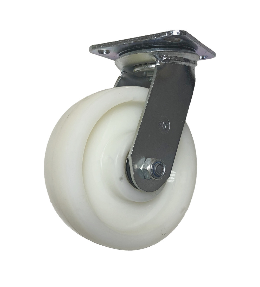 Большегрузные колеса неповоротные из полиамида (нейлона) изготовлены из белого полиамидного волокна, отлитого под давлением, они коррозионно-устойчивы, материал колес устойчив к воздействию множества агрессивных химических веществ и соединений, такие колеса и ролики имеют высокую механическую прочность, низкое сопротивление качению.