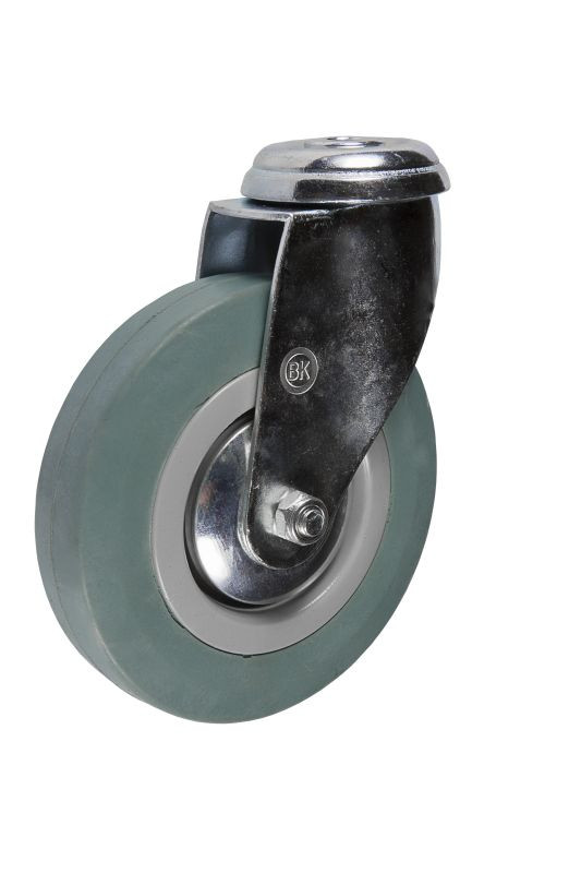Колесо серая резина поворотное крепление под болт SChg93 предназначено для перемещения грузов в закрытых помещениях.