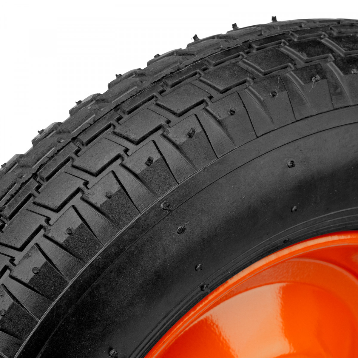 • Комфортная работа — пневматическое колесо эффективно поглощает вибрации даже при полной загрузке тачки.