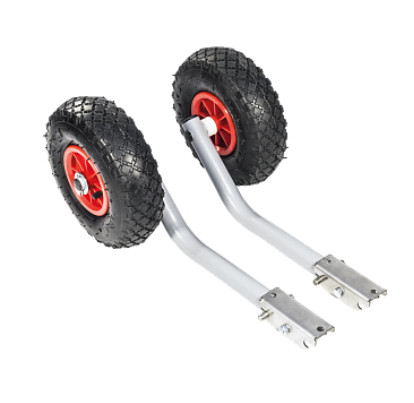 Транцевые колеса, установленные на моторно-гребную лодку ПВХ с жестким транцем, существенно, упрощают транспортировку судна от воды до места стоянки. Закрепляются на транцевой плите при помощи винтов и гаек. Имеют фиксаторы в рабочем и сложенном положении. Надувные колеса позволяют приспособиться к различному типу грунта, изменяя давление в шине.