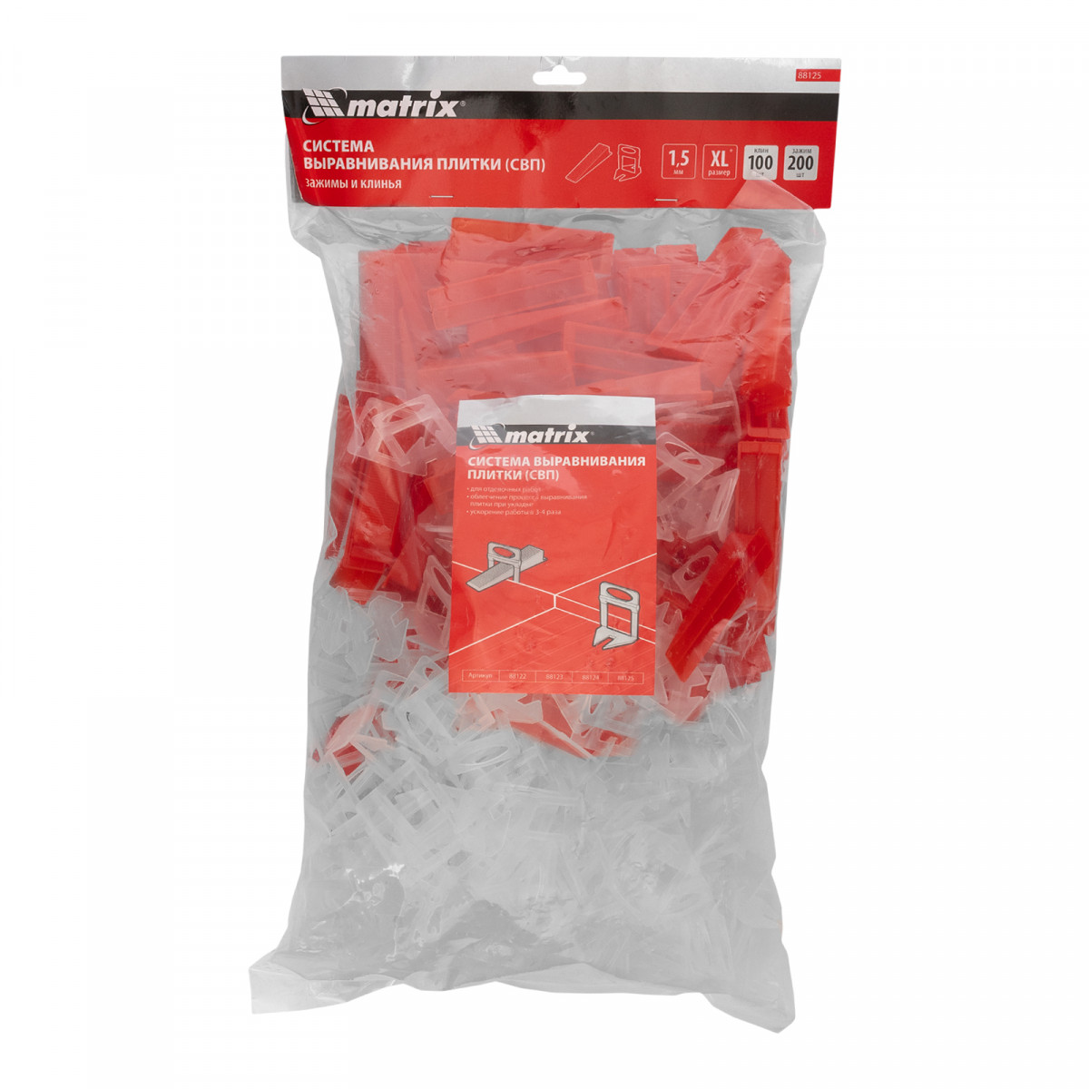 Комплект зажим + клин для системы выравнивания плитки СВП Ворота XL, 200/100 шт. в пакете Matrix