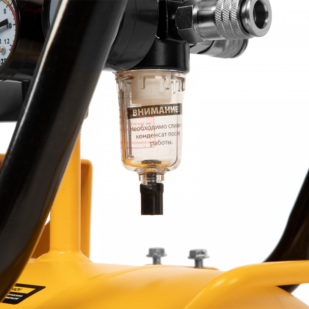 - Высокое качество очистки воздуха — фильтры надежно задерживают посторонние частицы, а влагоотделитель препятствует попаданию конденсата в пневмомагистраль.