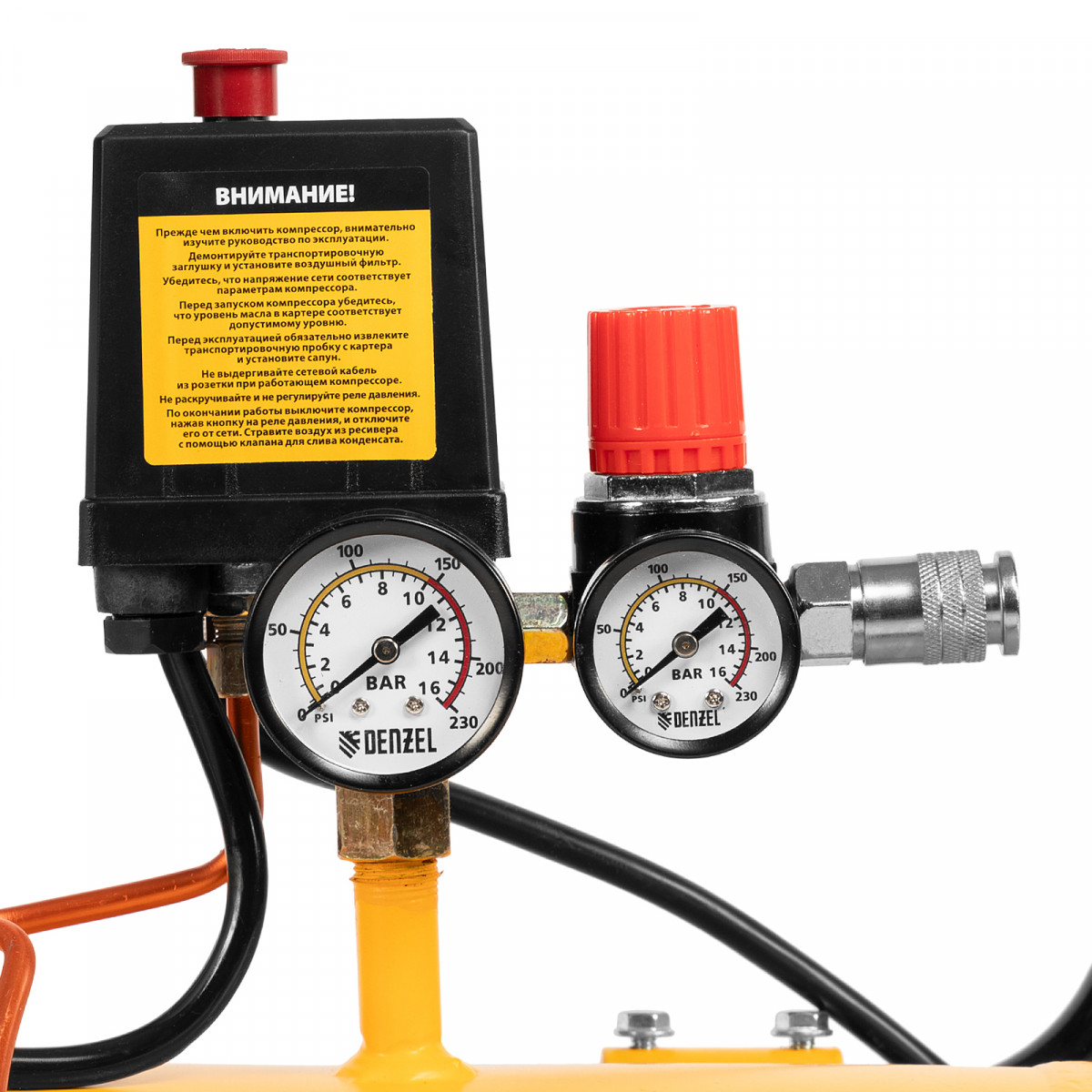 • Удобный контроль работы — 2 манометра позволяют следить за давлением в ресивере и на выходе компрессора.