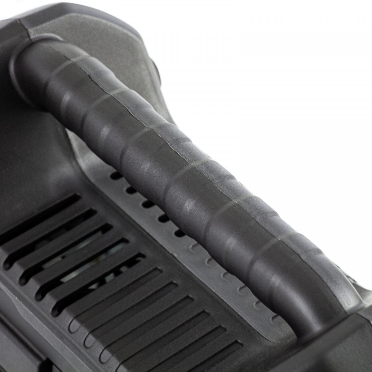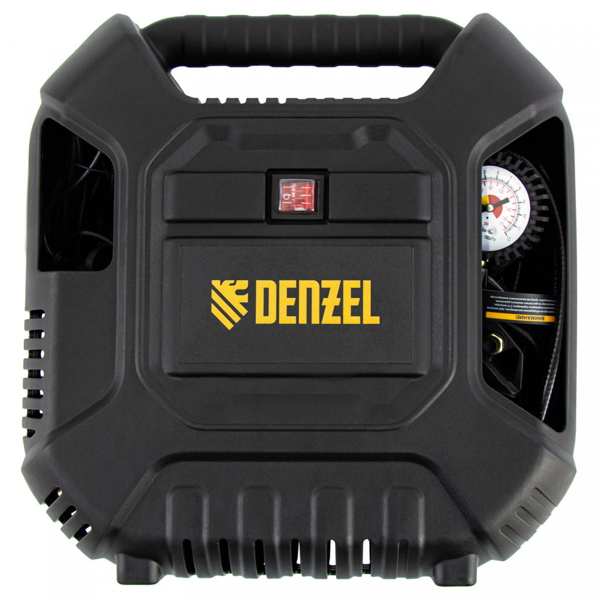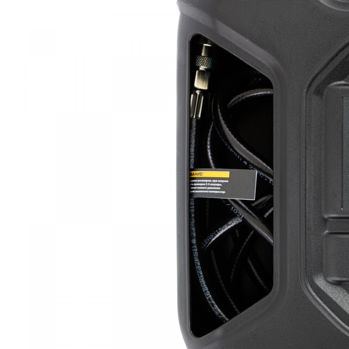 • Легкость перемещения — ребристая транспортировочная ручка делает переноску кейса-компрессора простой и удобной.