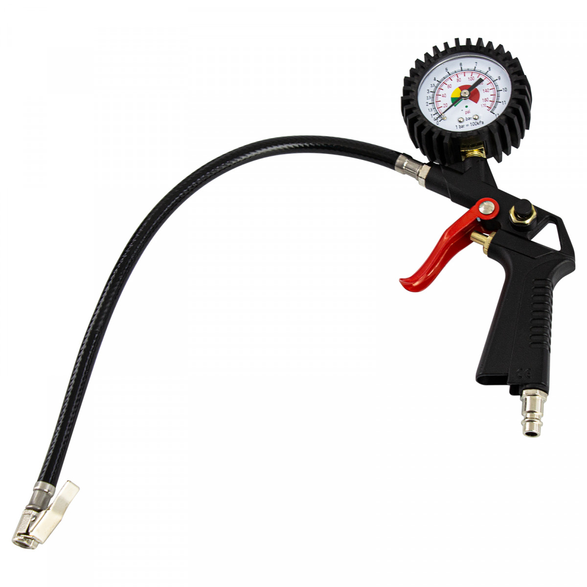 • Манометр пневмопистолета — несмотря на отсутствие ресивера, к которому обычно крепится измерительный прибор, контролировать давление сжатого воздуха можно по манометру, расположенному на корпусе пневмопистолета.