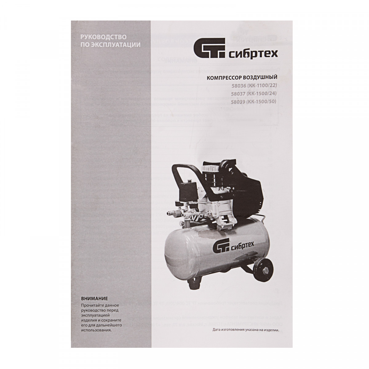 Компрессор воздушный КК-1500/50, 1.5 кВт, 198 л/мин, 50 л, прямой привод, масляный Сибртех