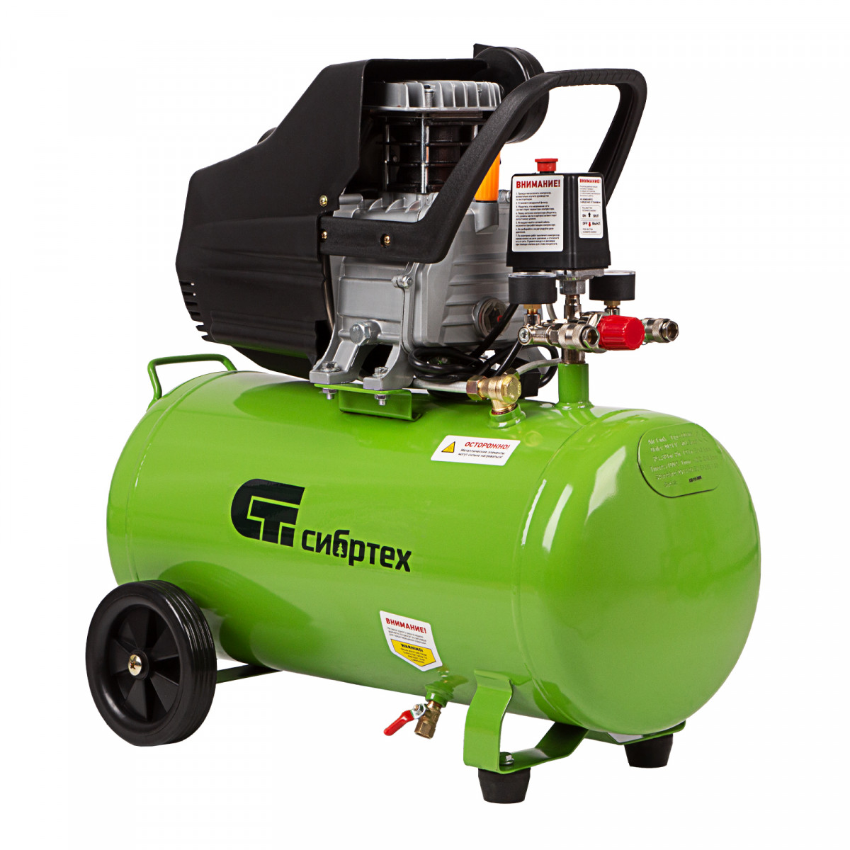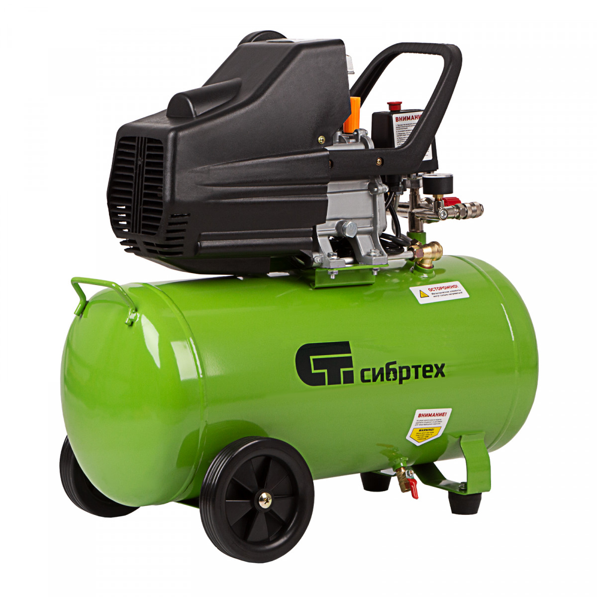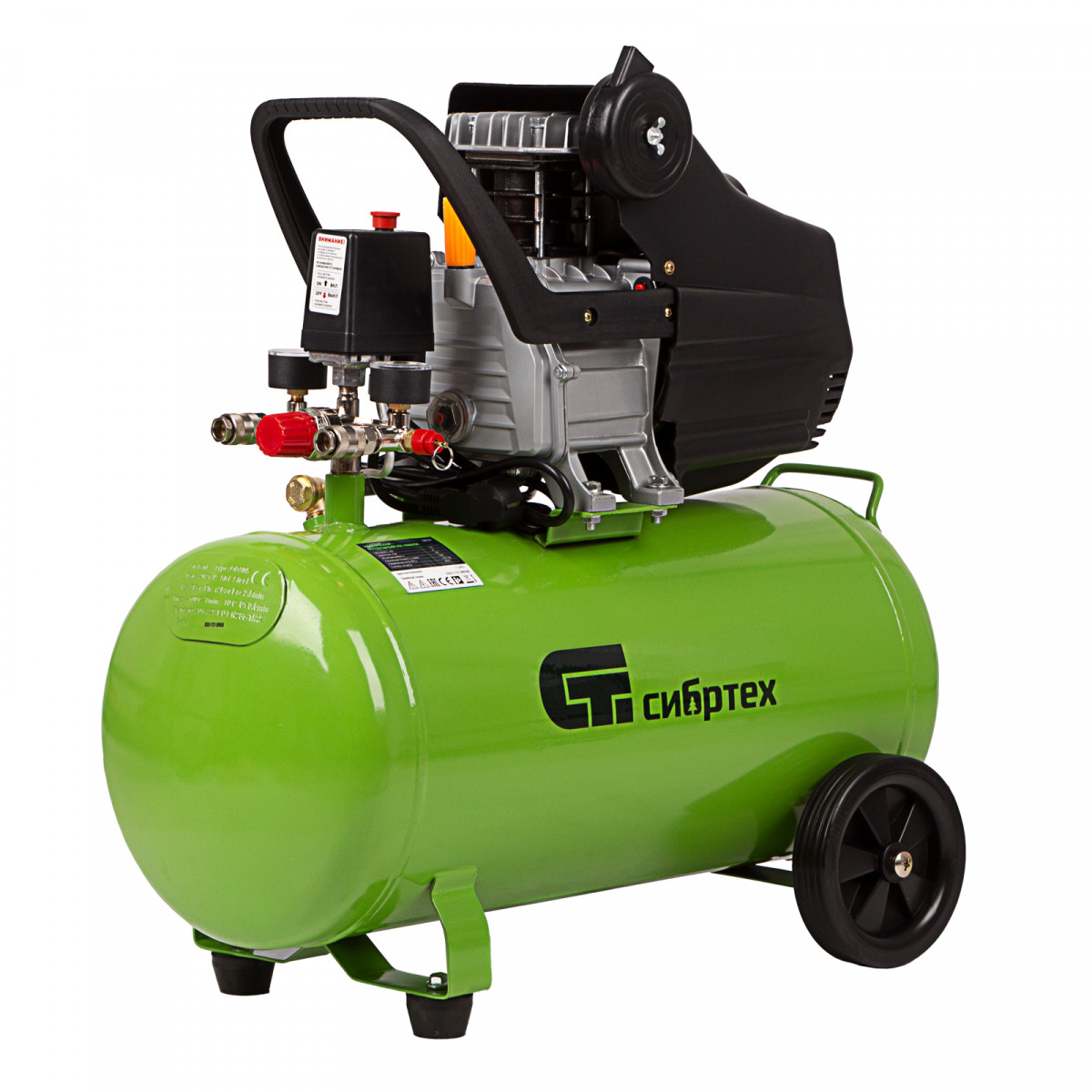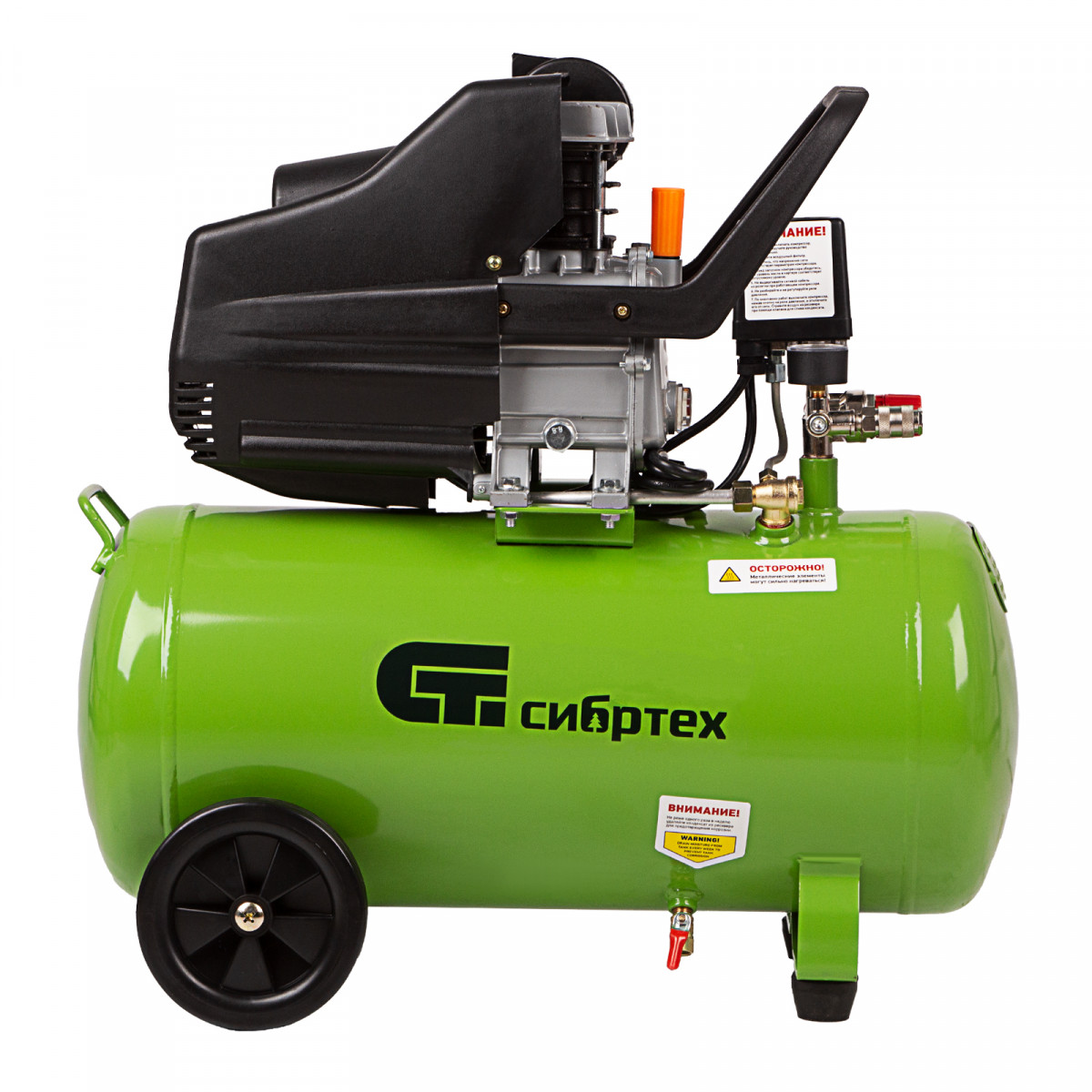 • Простота перемещения — поворотные колеса и удобная рукоятка помогают без усилий развернуть или переставить компрессор.