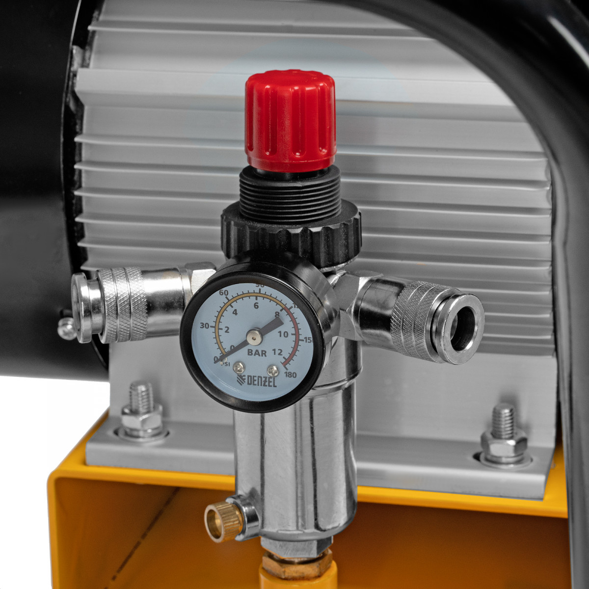 • Удобный контроль давления в ресивере и пневмомагистрали — компрессор оснащен двумя механическими манометрами.