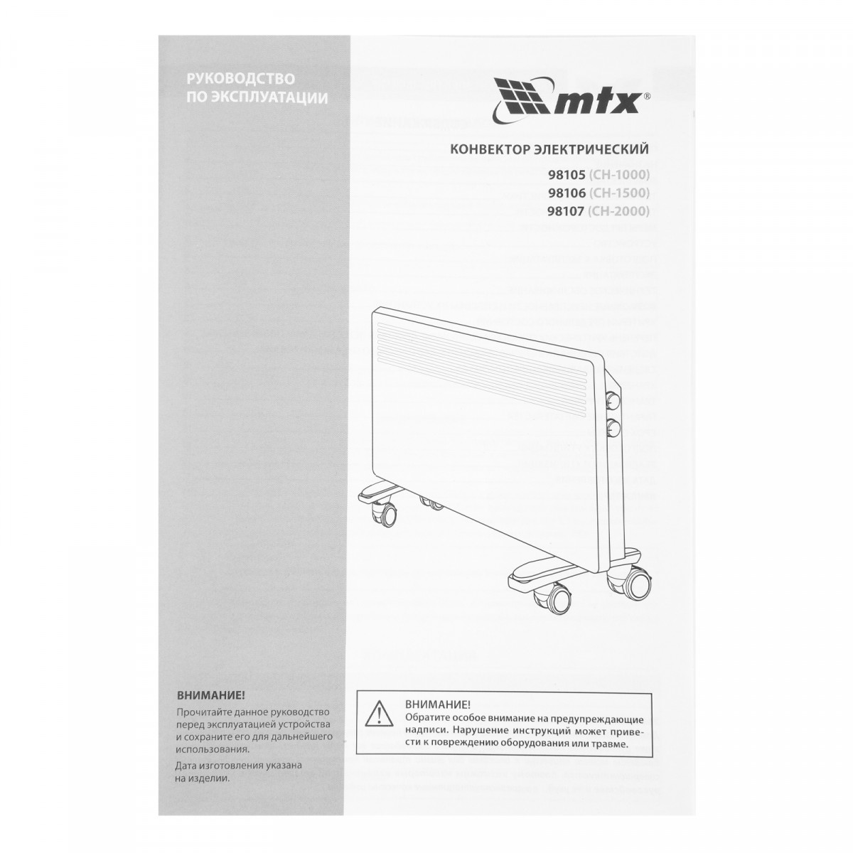 Электрический конвектор MTX CH-1000 98105 максимальной мощностью 1000 Вт, с X-образным нагревателем, термостатом и колесами, — источник тепла для жилых, офисных и хозяйственных помещений. X-образный нагревательный элемент позволяет быстро и равномерно нагреть помещение до нужной температуры. Площадь обогрева составляет 15 м2.