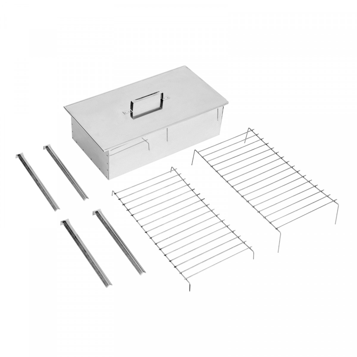 • Прочность и долговечность — коптильня из нержавеющей стали толщиной 0,8 мм устойчива к повреждениям и деформации.