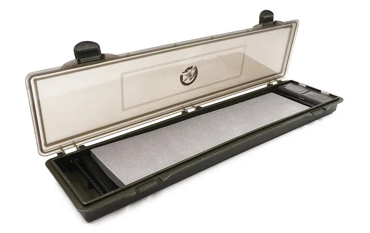 В коробочке присутствует планка для крепления поводков. Основание бокса устлано влагоустойчивым материалом EVA, на котором можно растянуть поводки и закрепить их с помощью кнопок, в комплекте к боксу идут 10 разноцветных кнопок.