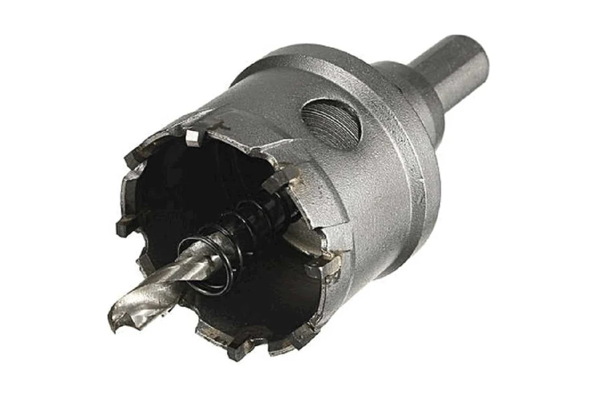 Коронка по металлу твердосплавная предназначена для сверления отверстий различного диаметра в металле, стали, латуни, алюминии и т.д. Также отлично справляется со сверлением нержавеющей стали толщиной до 2 мм. Коронка представляет собой цилиндрическую основу из углеродистой стали с ограничительным кольцом и трехгранным хвостовиком, который зажимается в патроне дрели и гарантирует отсутствие прокручивания.Режущая часть оснащена прочными твердосплавными (из сплава карбид-вольфрама) зубьями, позволяющими использовать коронку не только в бытовых, но и в профессиональных целях.Центрирующее сверло из быстрорежущей легированной стали не позволяет коронке сдвигаться при работе.Конструкция коронки монолитная, обладает повышенным ресурсом эксплуатации и высоким режущим качеством. Устанавливается на дрели, шуруповерты, сверлильные станки, а также на перфораторы (при использовании переходного