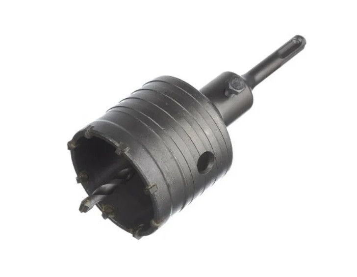 Коронка в сборе по бетону изготовлена из углеродистой стали. Для твёрдосплавных зубьев используется сплав марки ВК8. На внешней поверхности коронки имеется специальная спиральная канавка для вывода продуктов сверления, что позволяет снизить нагрузку на перфоратор.