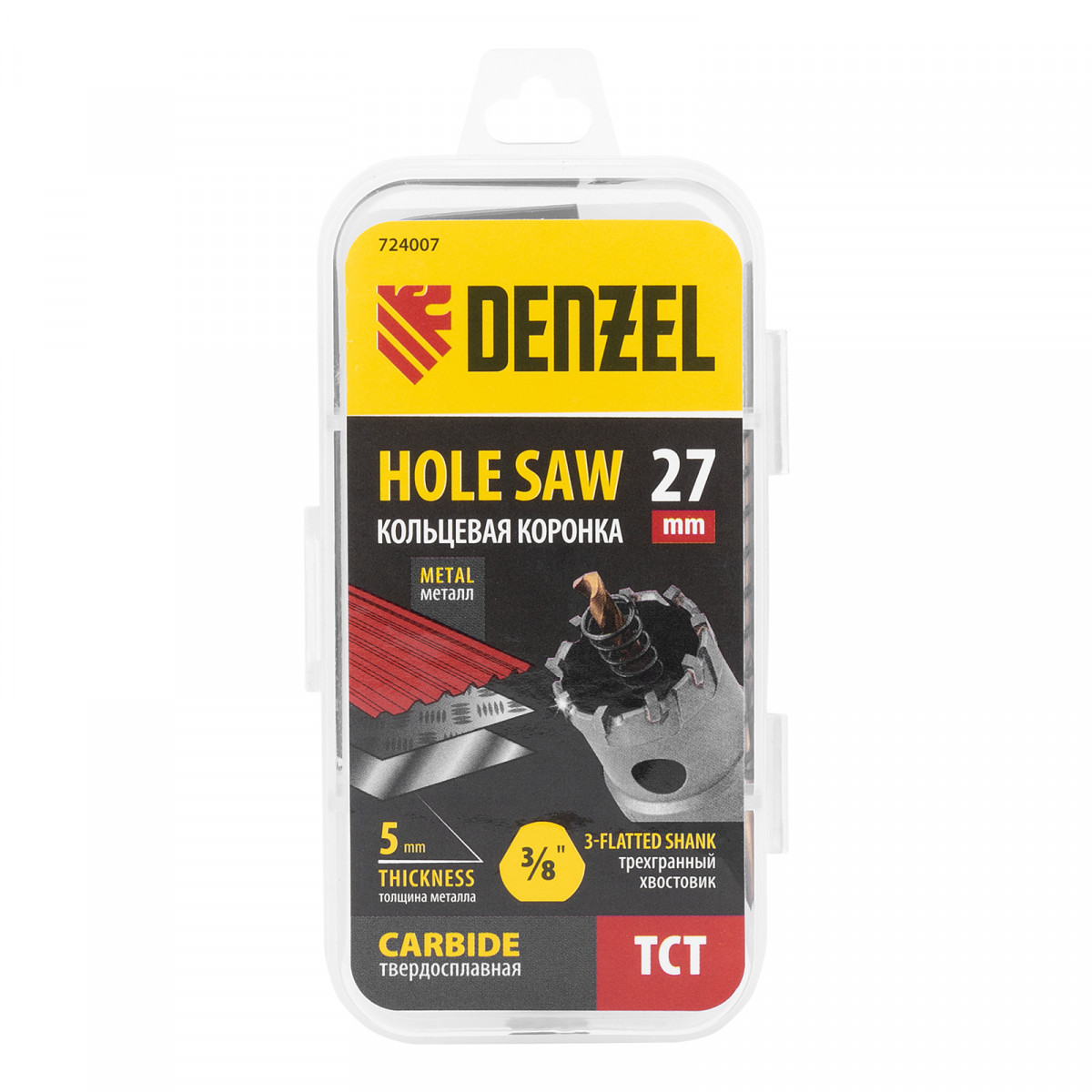 Коронка по металлу твердосплавная, 27 мм Denzel