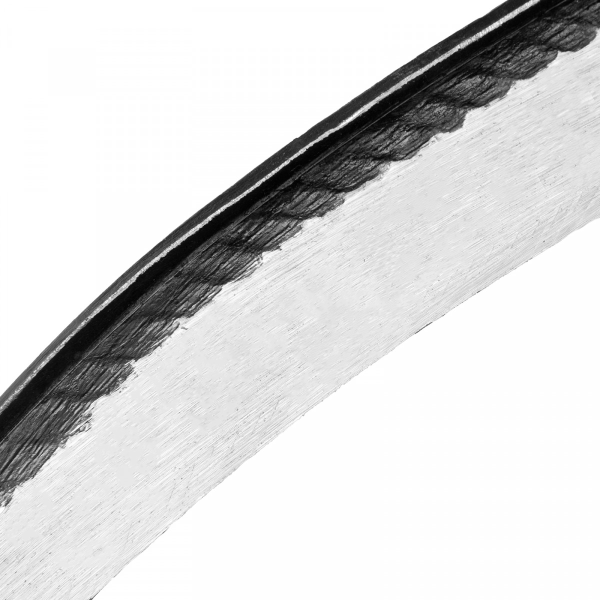 - Высокие режущие свойства — твердость рабочей кромки составляет 39-49 HRC, поэтому коса долго держит заточку.
