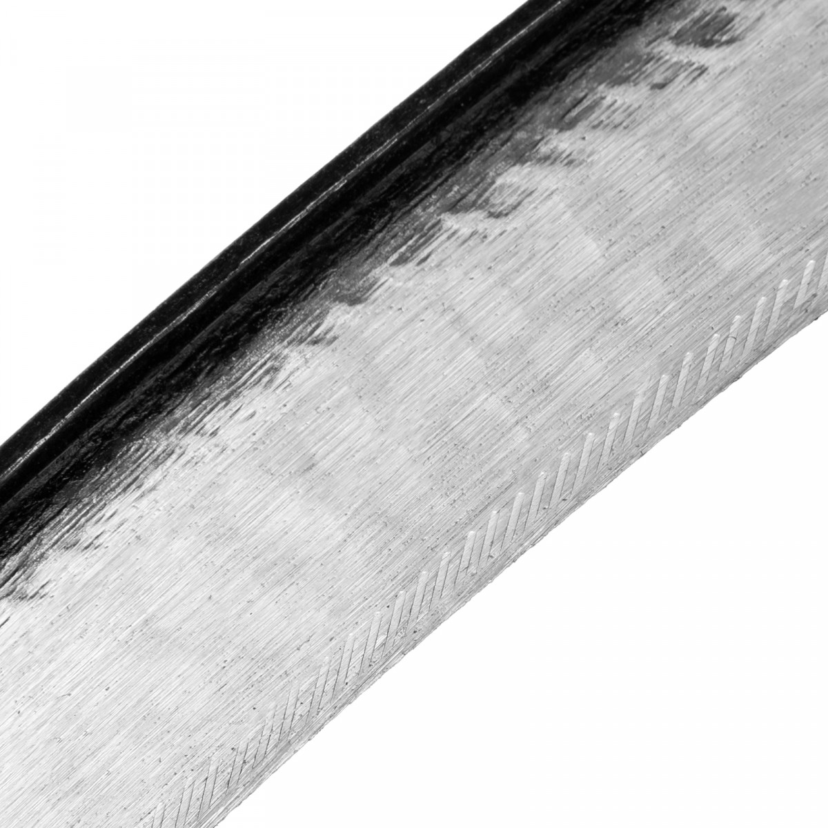 - Высокие режущие свойства — твердость рабочей кромки составляет 39-49 HRC, поэтому коса долго держит заточку.
