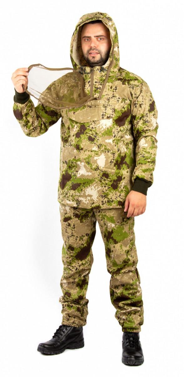 Сетка накомарника съемная и легко убирается в потайной карман. Плотная ткань создает надежную защиту, позволяет телу «дышать» и надежно защищает от насекомых. Рукава оснащены плотными трикотажными манжетами. Этот костюм отлично подойдет для всех, кто много бывает в лесу.