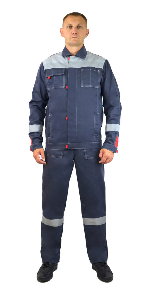 Костюм мужской летний, состоит из куртки и полукомбинезона.