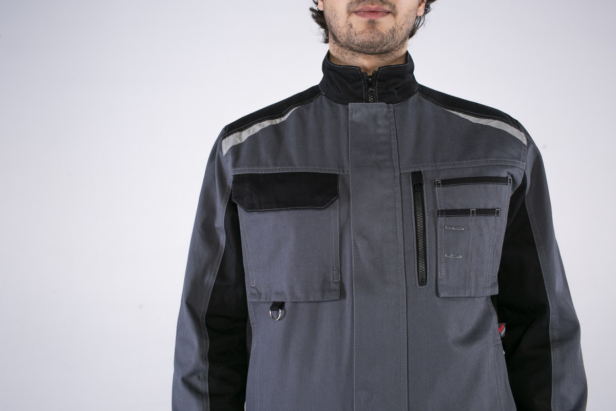 - на левый нагрудный накладной карман настрачивается малый накладной карман с двумя зональными отделениями и прорезными петлями