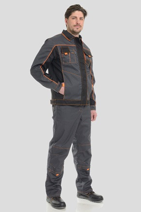 Костюм рабочий мужской серый с черным Бренд 1 рекомендован для обеспечения спецодеждой линейных руководителей, находящихся в цеху и подверженных общепроизводственным загрязнениям.