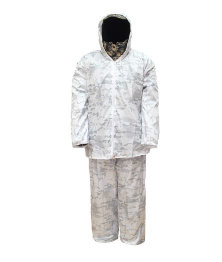 Зимний маскировочный костюм охотника одевается поверх зимней одежды. Костюм не шуршит. Капюшон регулируется двумя фиксаторами. Маскхалат березка – маскировочный костюм для зимней охоты. Одежда выполнена из ацетатного шелка, который славится долговечностью, эластичностью. Успех охоты зависит от навыков, удачи и правильного выбора экипировки. Хороший вариант для зимы – комфортный, долговечный маскировочный костюм. Выполненный из прочного ацетатного шелка маскхалат березка с темными пятнами разработан с учетом особенностей рельефа – в такой одежде охотник гарантированно останется незамеченным в оттепель или зимой, когда снег не полностью покрывает землю. Качественные материалы и тщательно продуманный рисунок сделает процесс охоты на заснеженной местности приятным и результативным. Универсальный размер и удобный крой позволяют надевать маскировочный костюм поверх теплой одежды. Мягкая, легкая ткань бесшумна при движении – даже самые «ушастые» животные вряд ли смогут определить приближающегося врага.