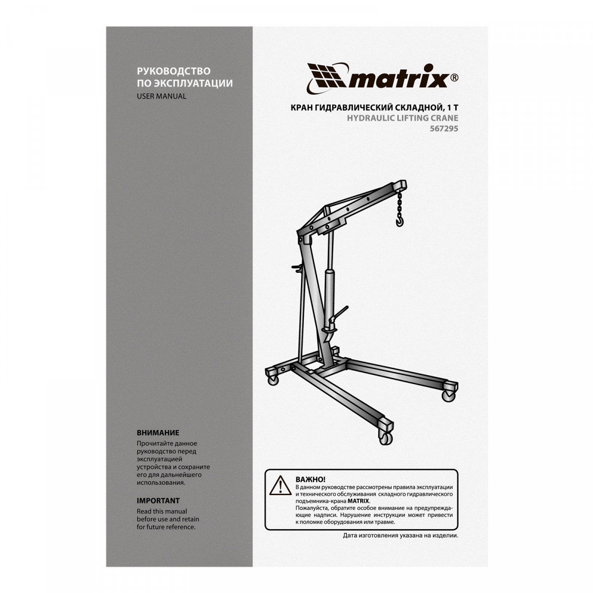 Кран гидравлический, 1 т, H подъема 25-2060 мм, складной (комплект из 2 частей) Matrix