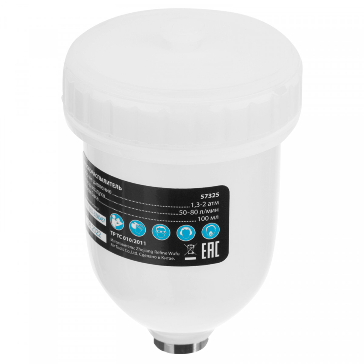 • Верхнее расположение бака — краскопульт удобно заправлять, лакокрасочный материал расходуется полностью.