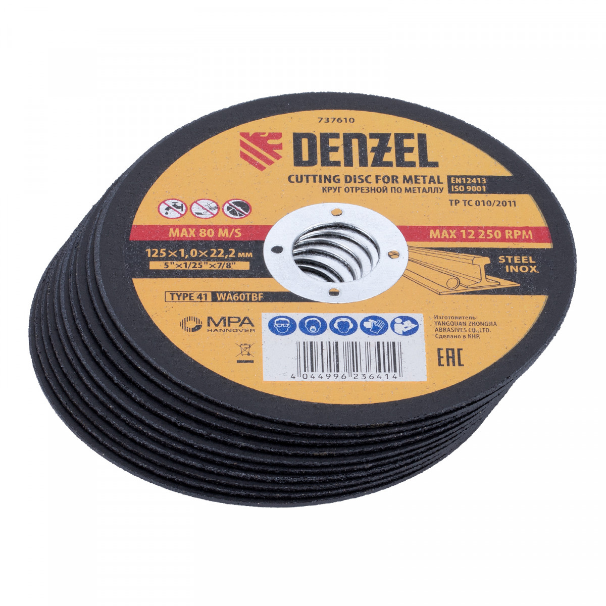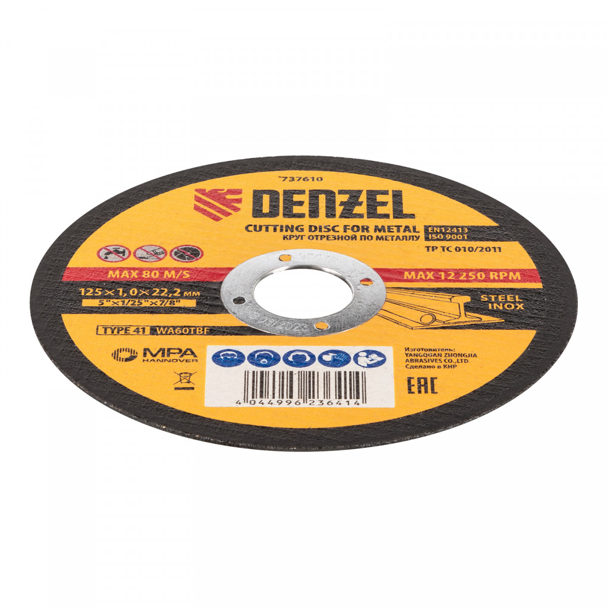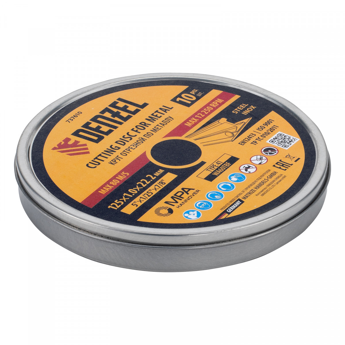 Круг отрезной по металлу, 125 х 1,0 х 22,2 мм, WA60TBF, в метал.банке, 10 шт. Denzel