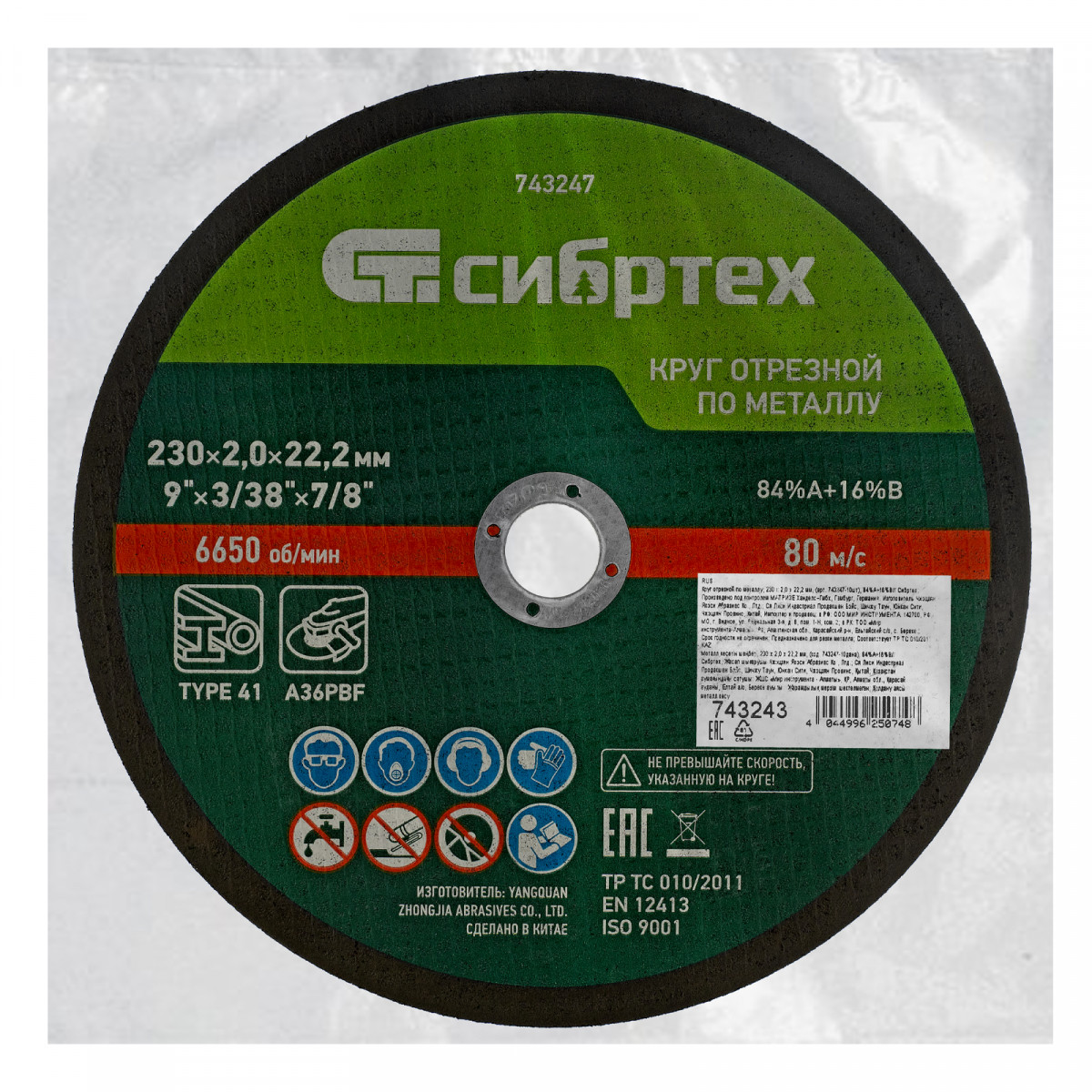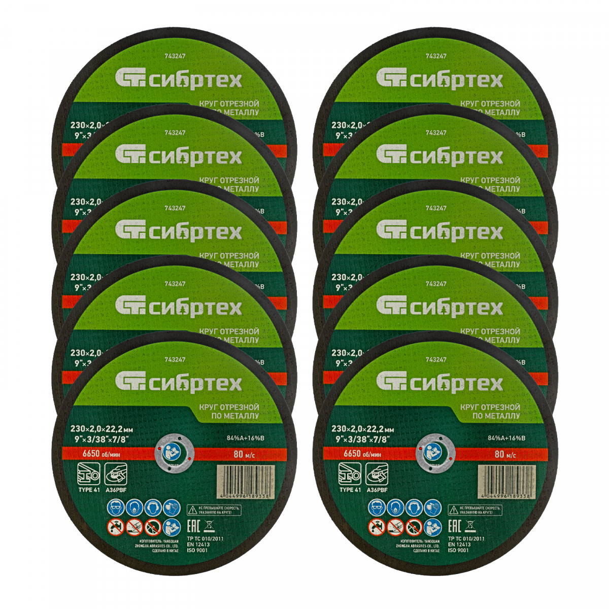 Круг отрезной по металлу, 230 х 2,0 х 22,2 мм, 84%A+16%B, в пленке, 10 шт Сибртех