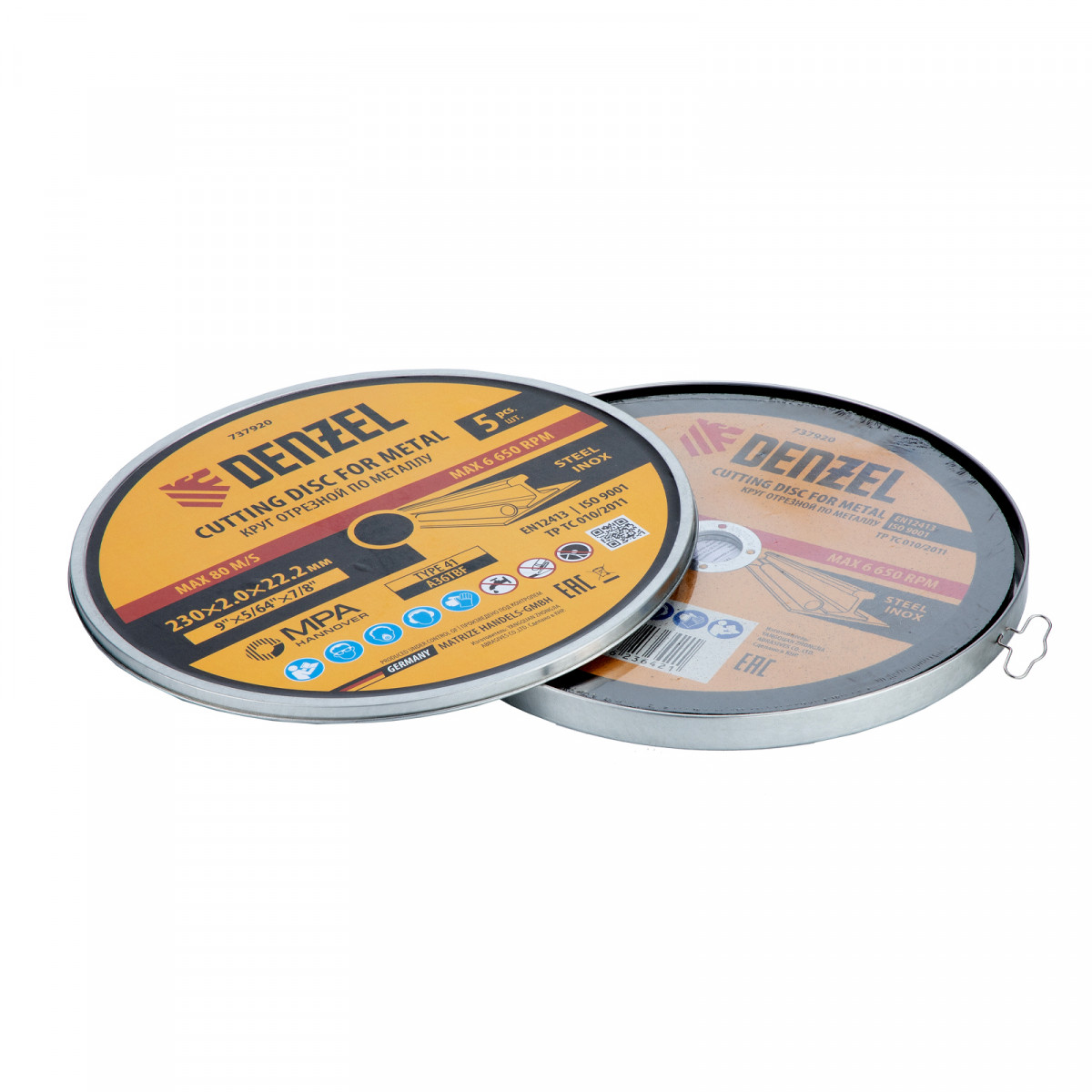 Круг отрезной по металлу, 230 х 2,0 х 22,2 мм, A36TBF, в метал.банке, 5 шт. Denzel