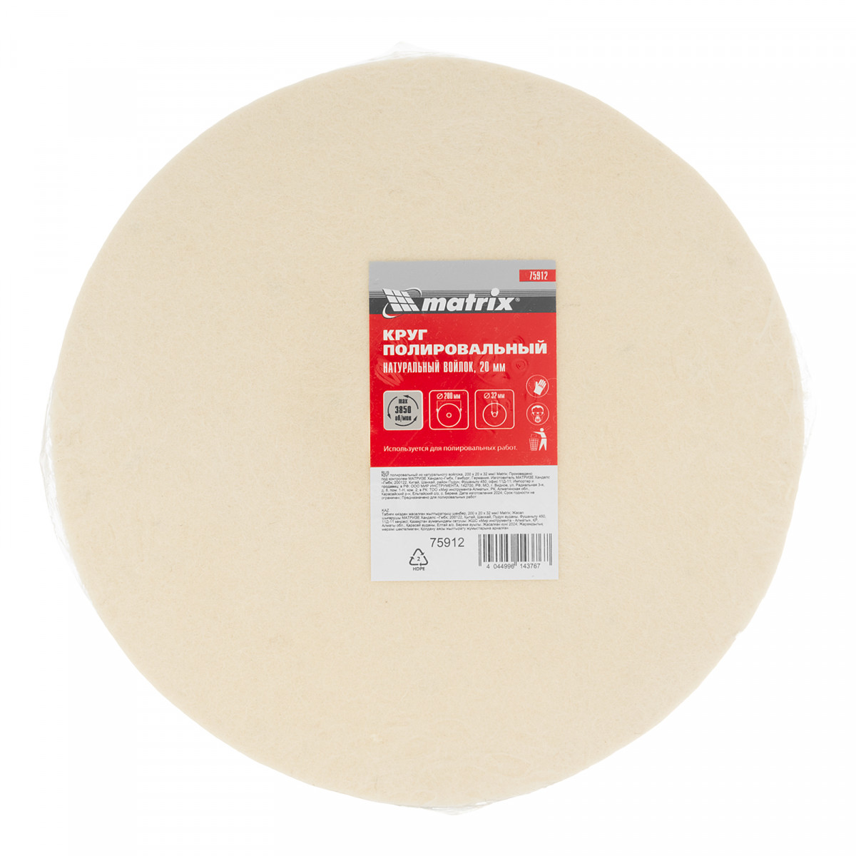 Износоустойчивый круг из 100% овечьей шерсти для эффективной обработки различных материалов.