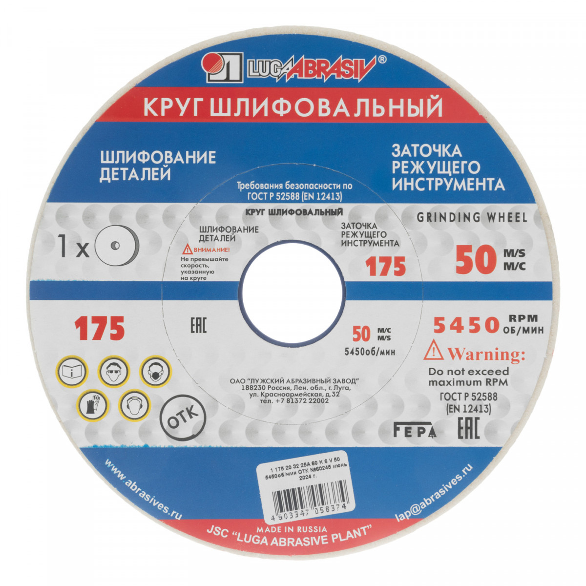 Круг шлифовальный, 175 х 20 х 32 мм, 25А, F60, (K, L) "Луга"