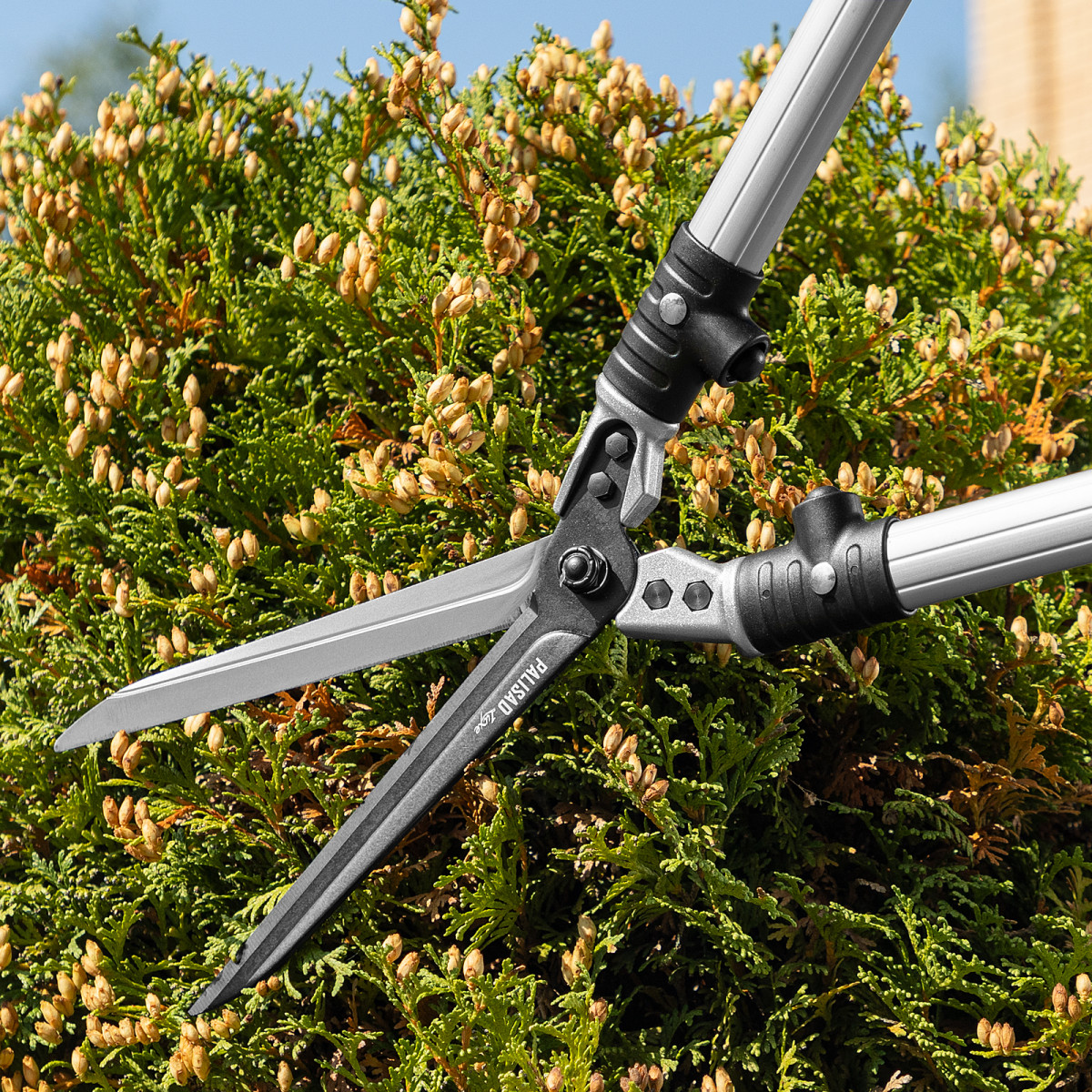 Кусторез кованый Palisad LUXE Forged 605945 длиной 600 мм, с алюминиевыми обрезиненными рукоятками, предназначен для подрезки крон деревьев и кустов с ветками диаметром до 12 мм. С его помощью можно создать живую изгородь и омолодить растения, добиться увеличения прироста побегов и урожая. Инструмент пригодится как частным, так и профессиональным садоводам.