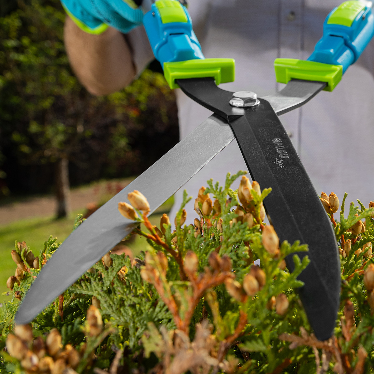 • Безопасность — специальный ограничитель предотвращает выход кустореза из строя при сильном сжатии рукояток.