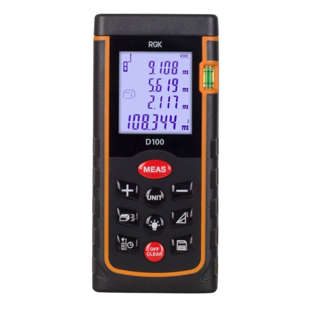 Функции Лазерная рулетка rgk D100 оснащена максимальным набором функций, которые помогут вам существенно повысить свою эффективность. Всё, что вам необходимо сделать - это нажать на соответствующую кнопку или выполнить несколько последовательных измерений. Функция периметра, площади и объема - позволяет автоматически рассчитать эти значения. Функция Пифагора - поможет вам измерить недоступные расстояния или вычислять высоту объекта, автоматически используя знаменитую теорему. Просто произведите замер до стены здания, затем до его крыши (соблюдая прямой угол) и прибор автоматически рассчитает высоту здания (третий катет) используя полученные данные. Функция непрерывных измерений. Вы можете двигаться с включенным дальномером, удаляясь или приближаясь к объекту измерений, а на экране при этом будет в реальном времени отображаться текущее расстояние. Это позволит вам, например, отмерить определенное расстояние или произвести несложный вынос точки в натуру. Функция определения минимума и максимума. Перемещайте ла