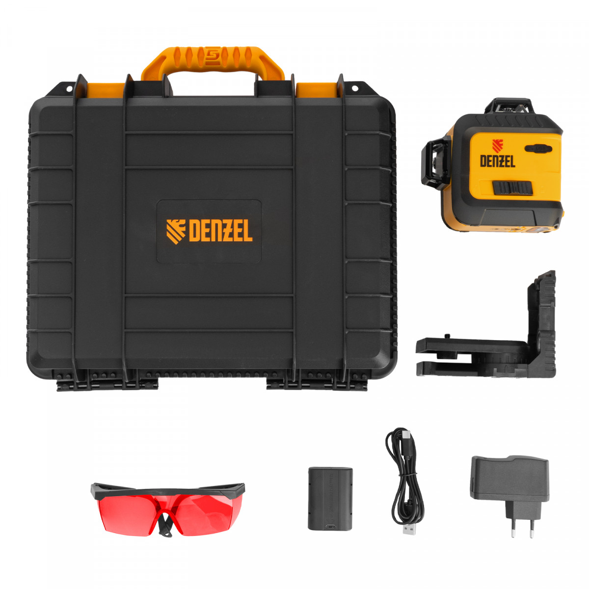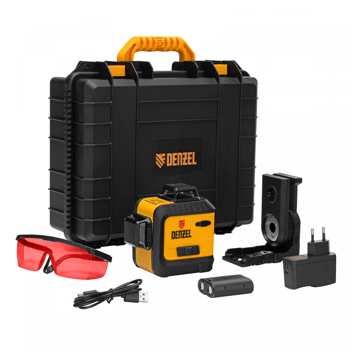 Лазерный уровень мультипризменный LX 360-3 Red, 30 м, 635 нм, аккумулятор Li 2800 мАч, резьба 5/8" Denzel