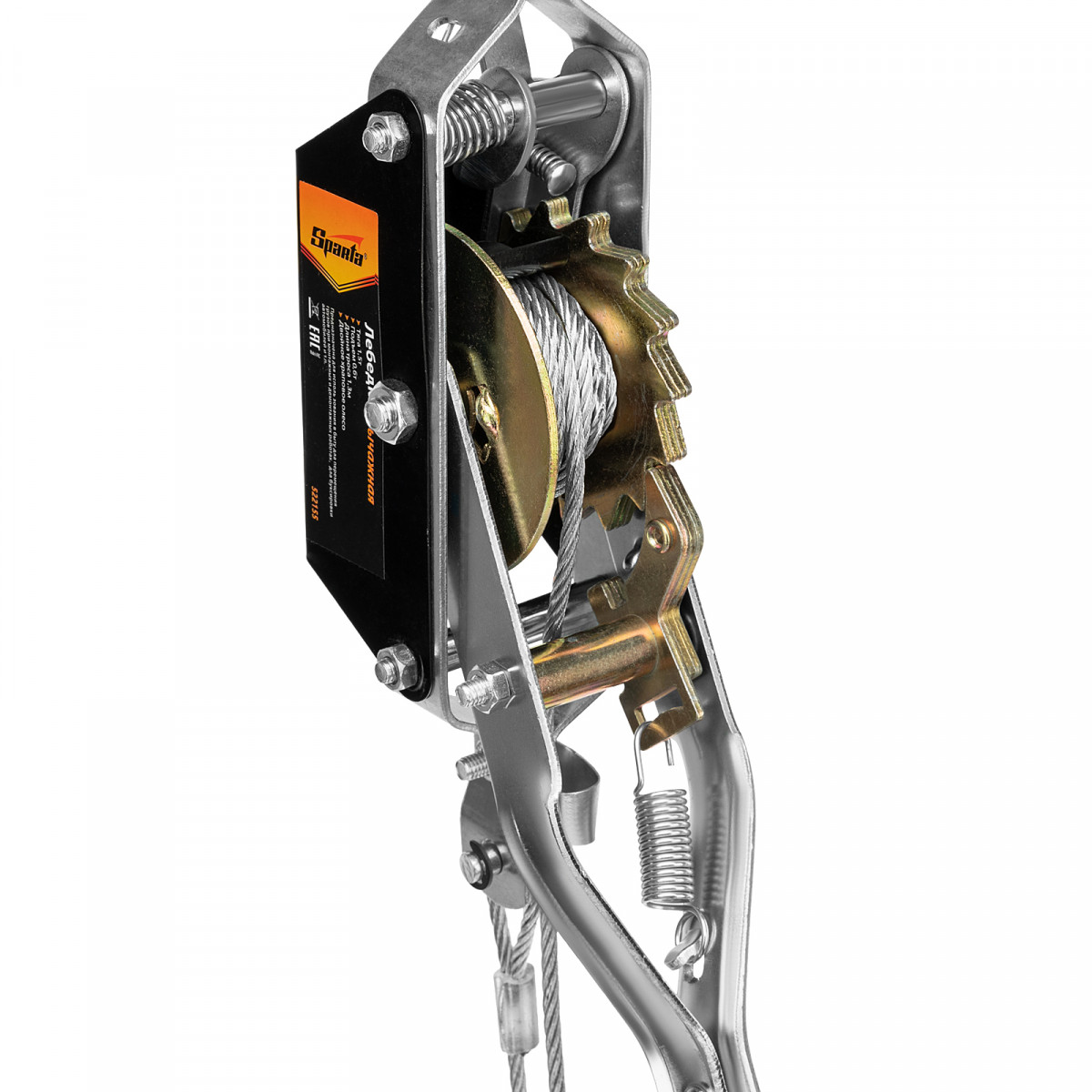 • Храповый тормоз обеспечивает безопасность груза, не допуская его падения.