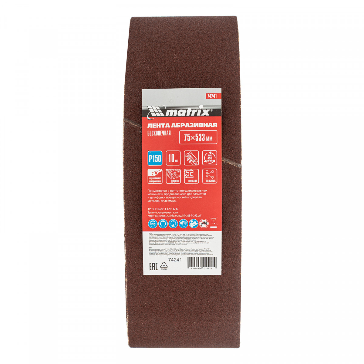 Лента абразивная бесконечная, P 150, 75 х 533 мм, 10 шт Matrix
