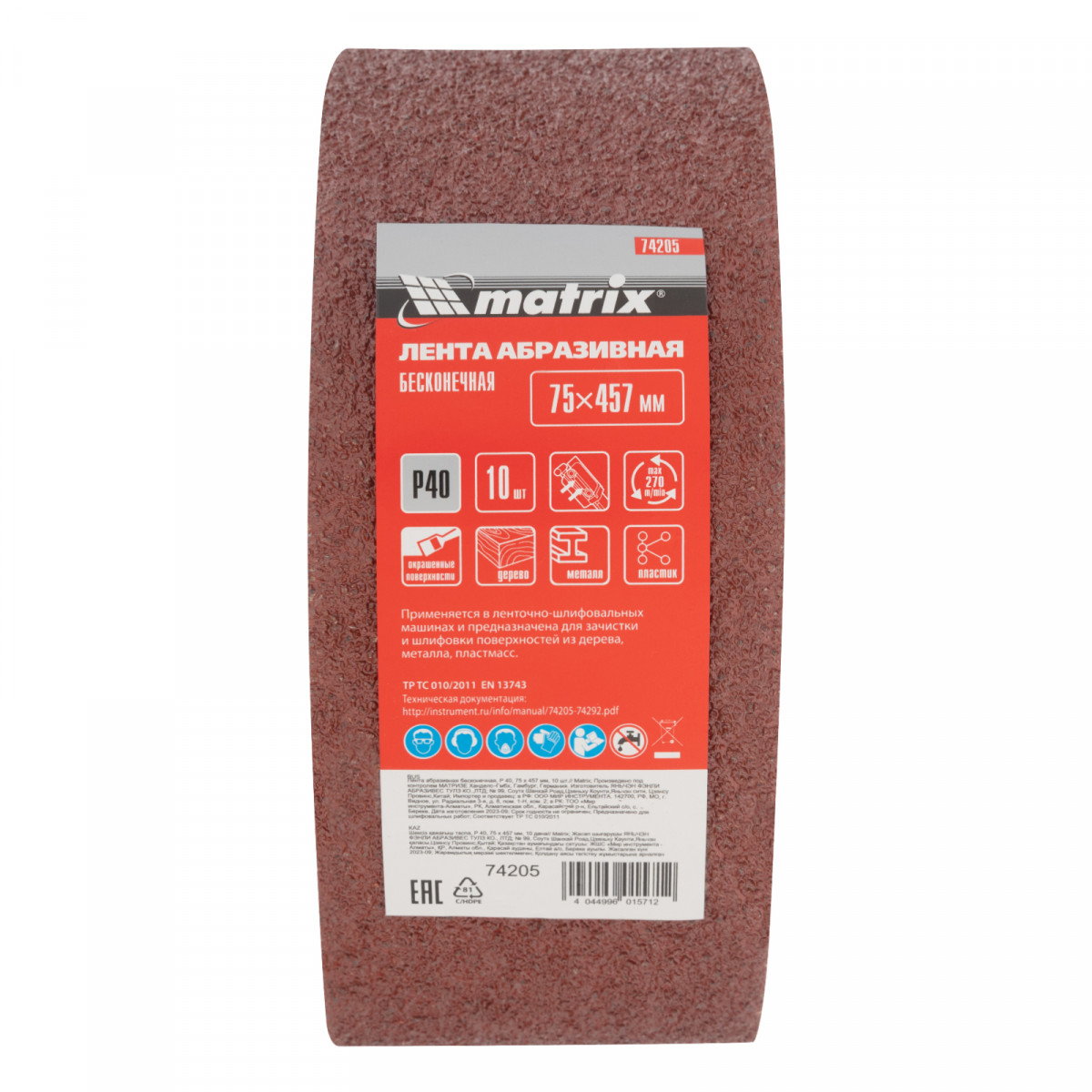 Лента абразивная бесконечная, P 40, 75 х 457 мм, 10 шт Matrix