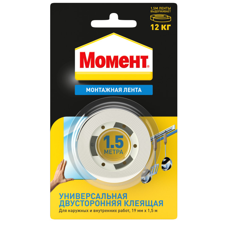 Лента клеящая 1,5 м. 120 кг, 150 см"Момент" двусторонняя
