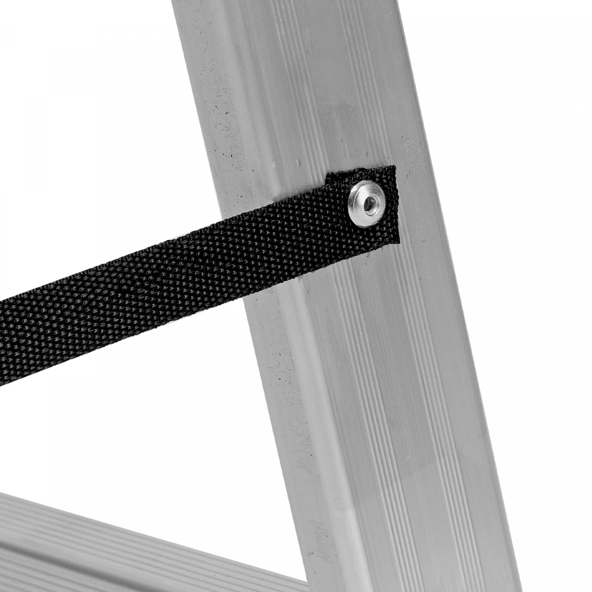 - Устойчивость — благодаря съемному стабилизатору лестница ровно стоит на горизонтальной поверхности.