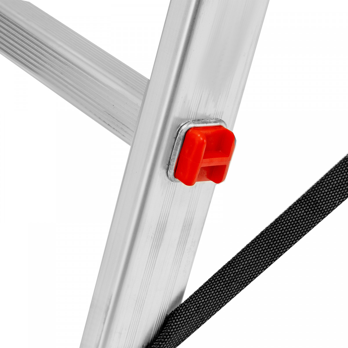 - Устойчивость — благодаря съемному стабилизатору лестница ровно стоит на горизонтальной поверхности.