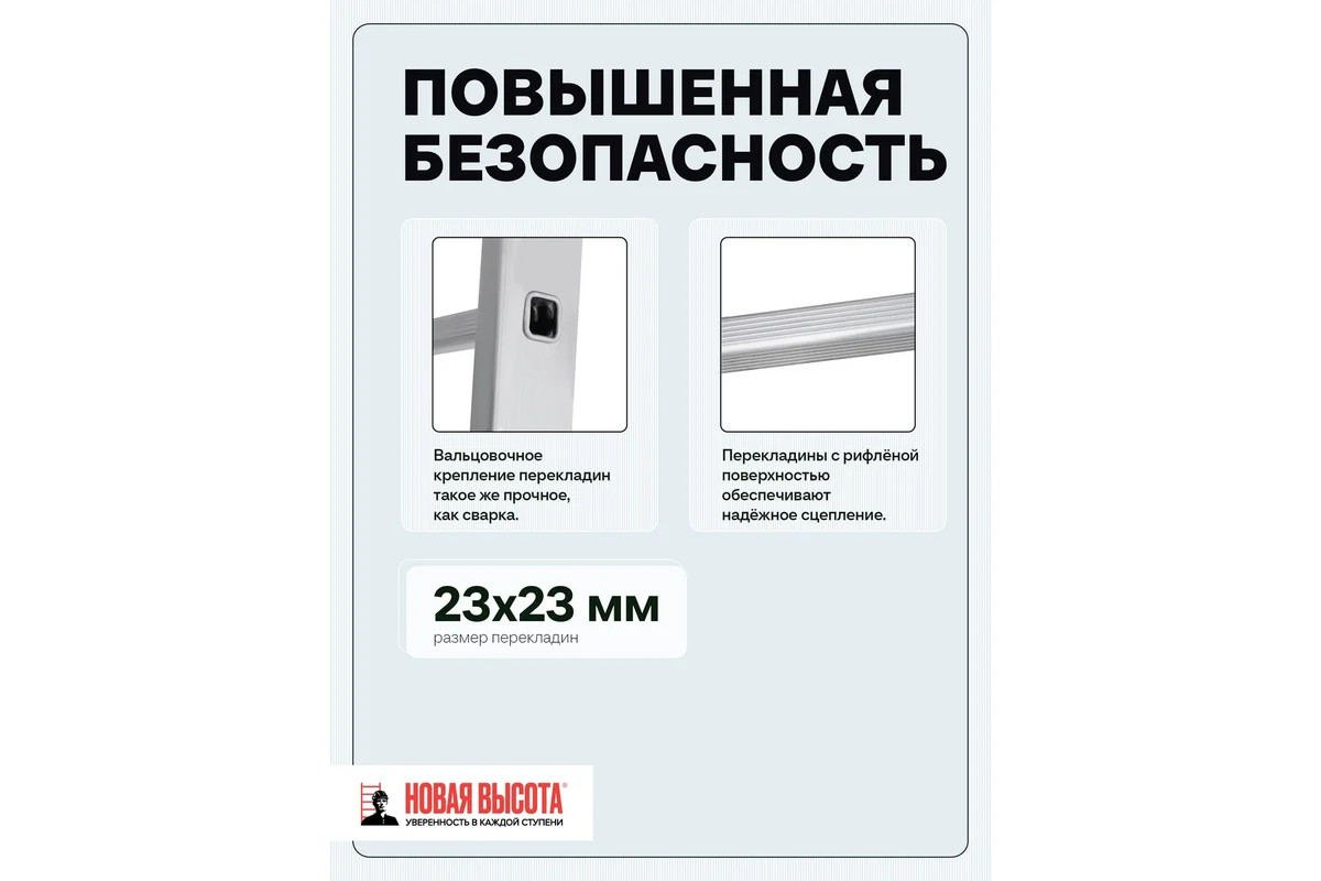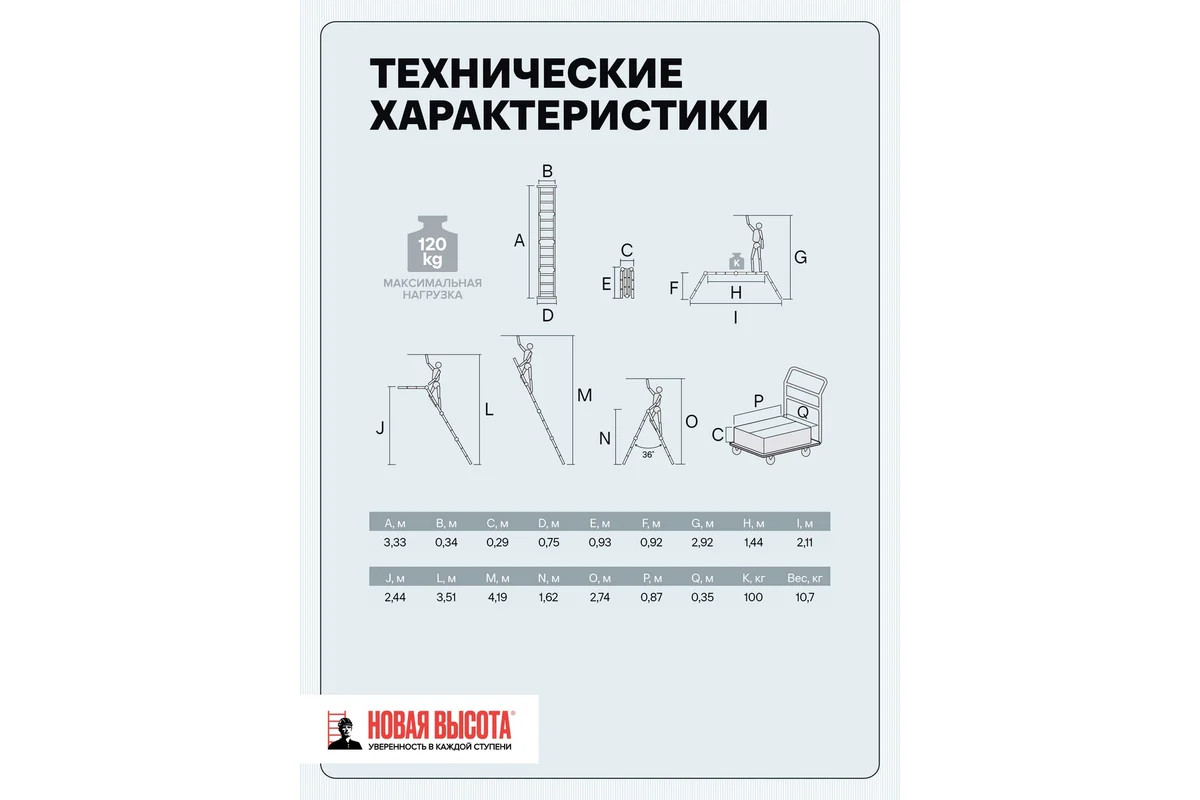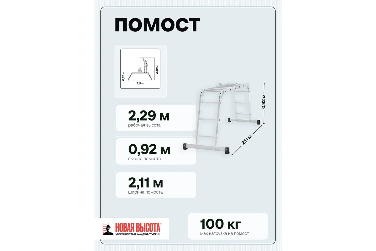 • Преимущества Новая Высота 4 рабочих положения; Лестница сделана из алюминиевого профиля - прочность и надежность;