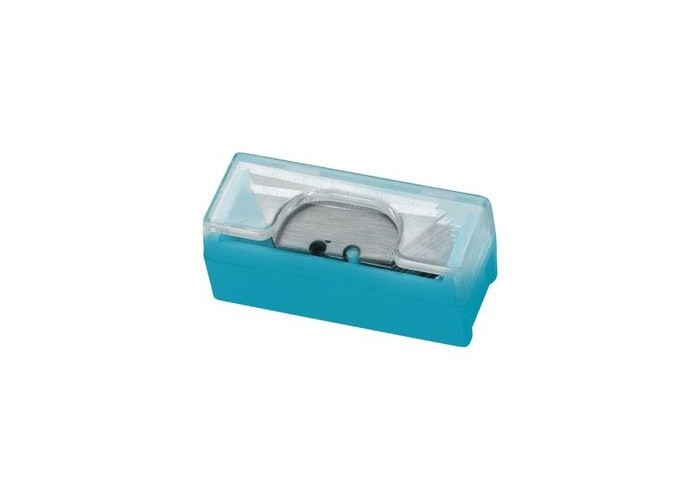Набор трапециевидных полотен для монтажных ножей мини. Сталь SK-2. Размер полотен 27 х 0,6 х 9 мм. Пластиковый пенал. Прозрачная пластиковая крышка. Извлечение полотен происходит без снятия крышки.